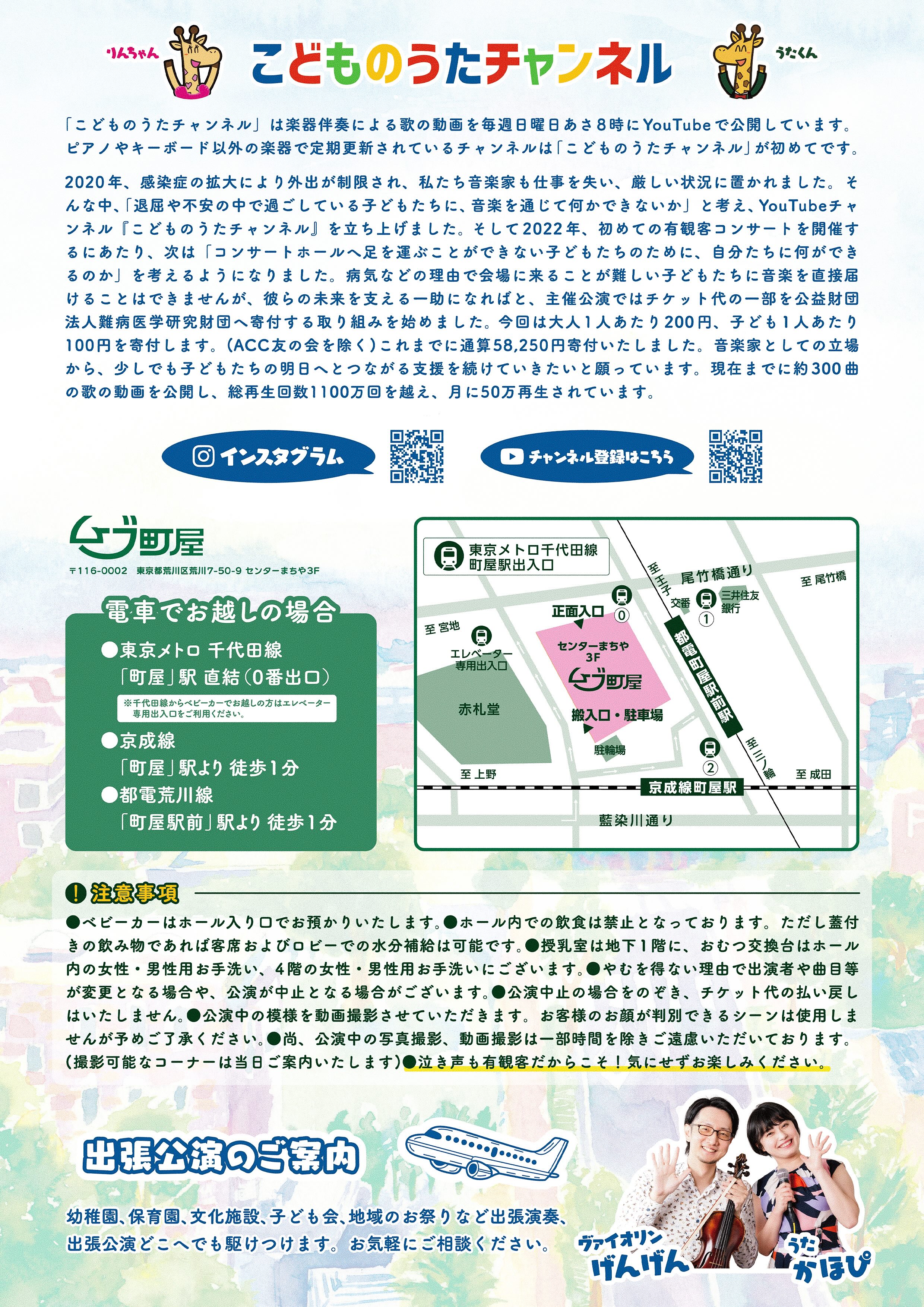 地下鉄「町屋駅」直結のムーブ町屋でYouTubeチャンネル「こどものうたチャンネル」のうたとフルートのコンサート